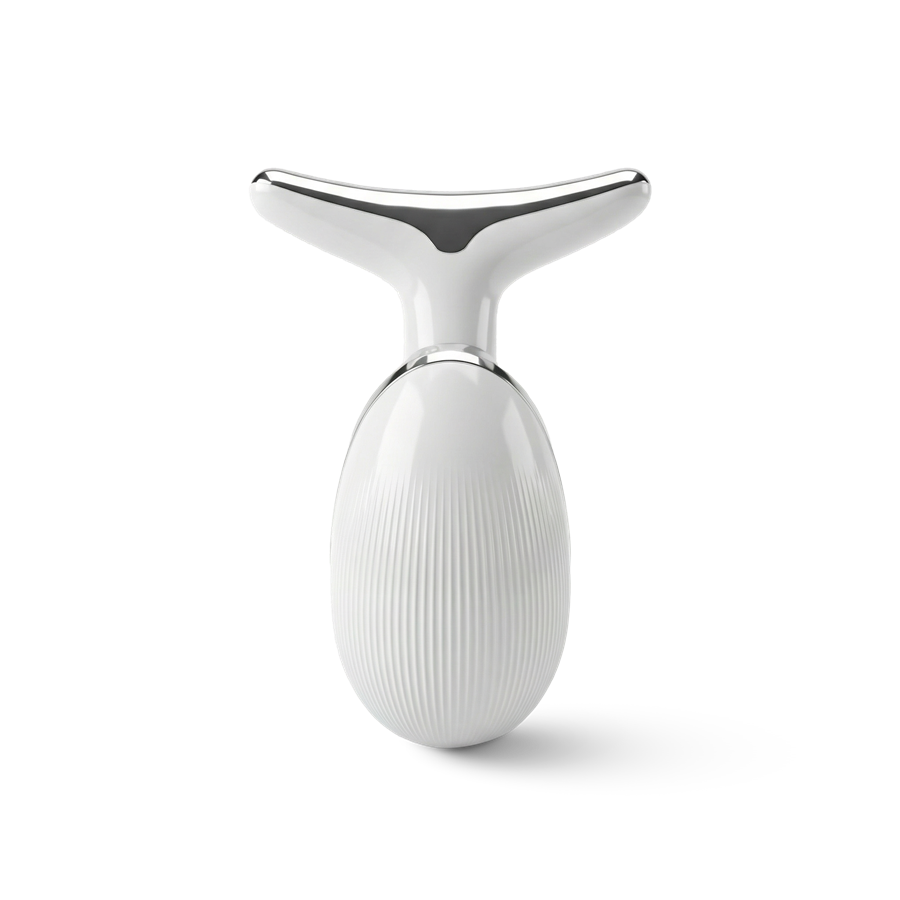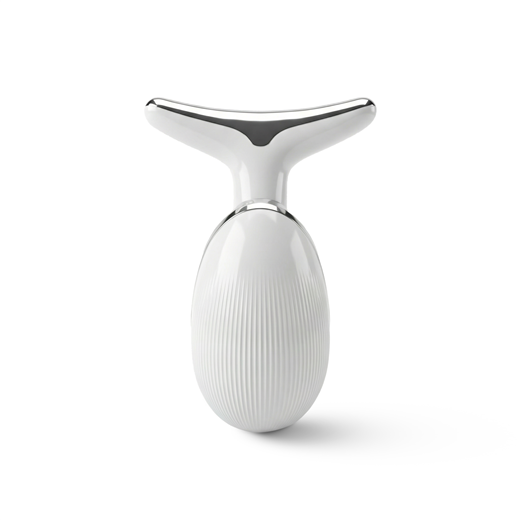 Ergonomiczny masażer pomaga rozluźnić napięcie, poprawić komfort skóry i podkreślić naturalny kontur twarzy.